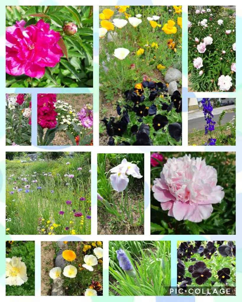 こんにちは👋😃2枚目です😌💓。小さな花達も、薔薇🌹に、負けず、元気に、咲いてるお多福ガーデンです。花菖蒲が、昨日と、今日、と、うす水色?、今日はピンク、明日は、ブルーが、咲きそうです。まだまだ早いって言うのに、3本だけ、とっくに蕾を、つけてました。他は、まだ、眠っています😌。芍薬が、咲きだしました!蕾を、触ったら、甘いんですね❗びっくり👀アリンコが、なめまわっています。かじらないでね❗ガーデン仲間の、ストックも、綺麗に咲きだしました✌ガーデンの、後ろの、ほうでは、矢車草が、風に、揺れて綺麗に咲いてます。手前では、黒パンジーも、頑張って咲いてます、ハナビシ草も、黄色と、白が、今年は咲いてます。見てくださいね🎵。お多福ガーデン便りでした。