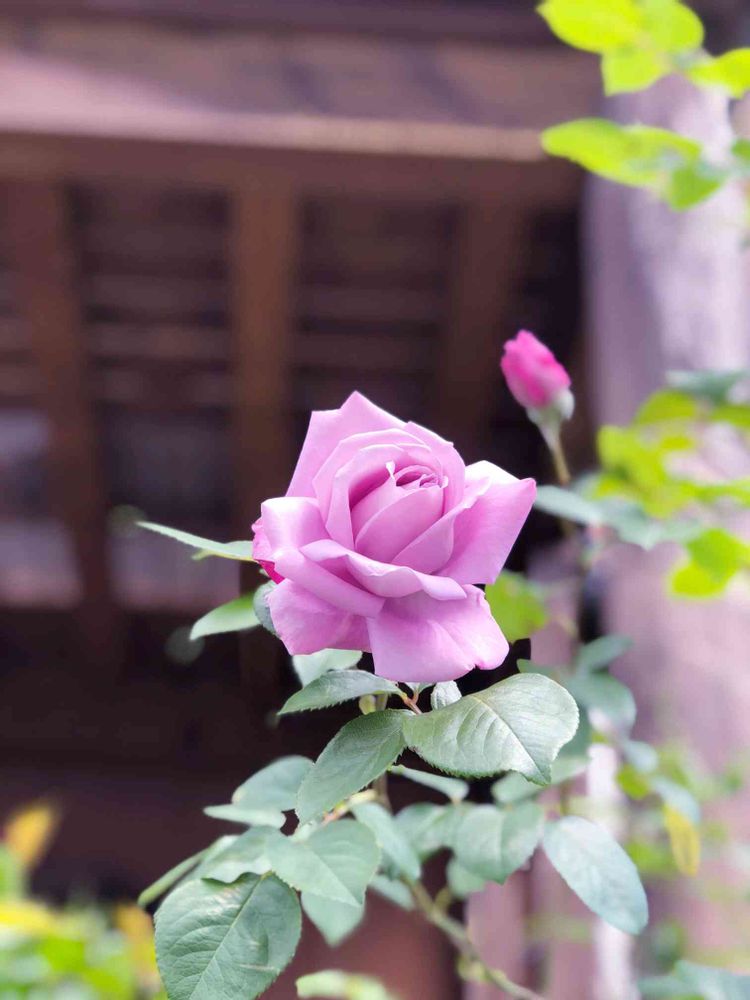 独身時代に生花会社で働いてた時にアレンジが素晴らしく上手な先輩の男性社員が紹介してくれたバラがブルームーンでひと目で気に入っちゃってそれからずっといつか一軒家建てたらこのバラ植えたいなぁ〜💙って。
