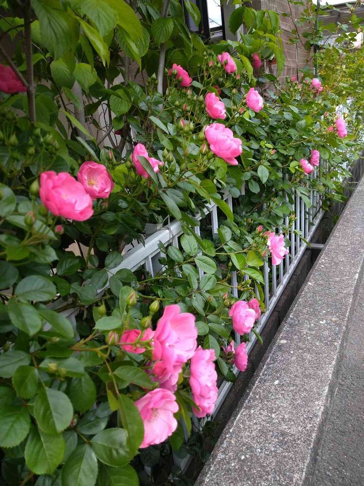 我が家のピンクのバラシリーズで、一番古くから育てているアンジェラが、次々と咲いています。
