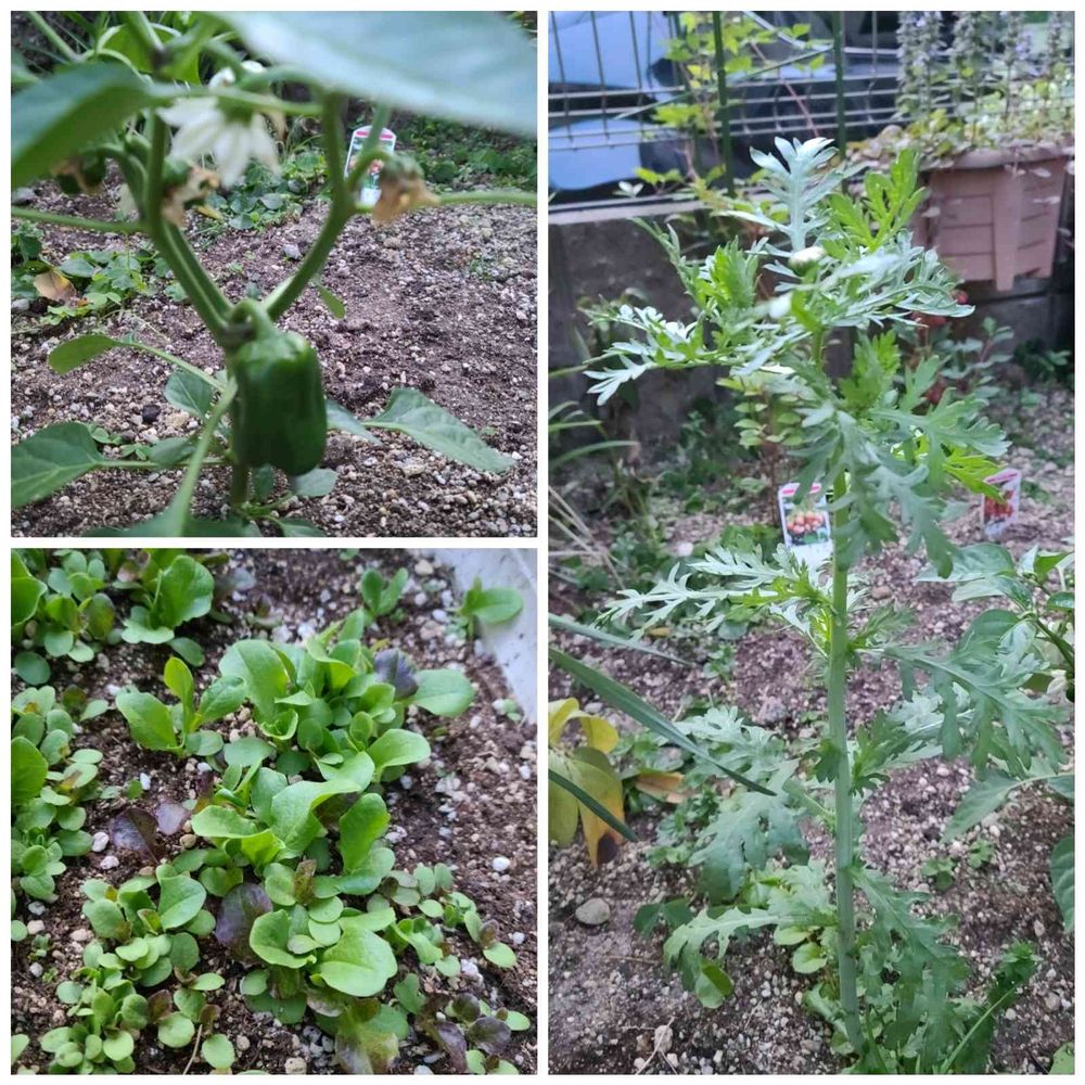 小さな庭,菊菜,早生ピーマンの投稿画像