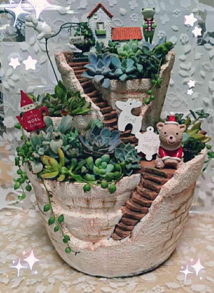 可愛い~❤🎄割れ鉢のクリスマス寄せ❗動物達の物語がはじまりましたね。