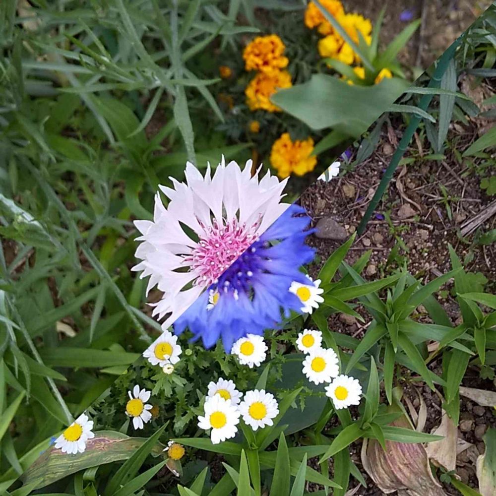 2色のヤグルマギクの写真を合わせてみました🎭️