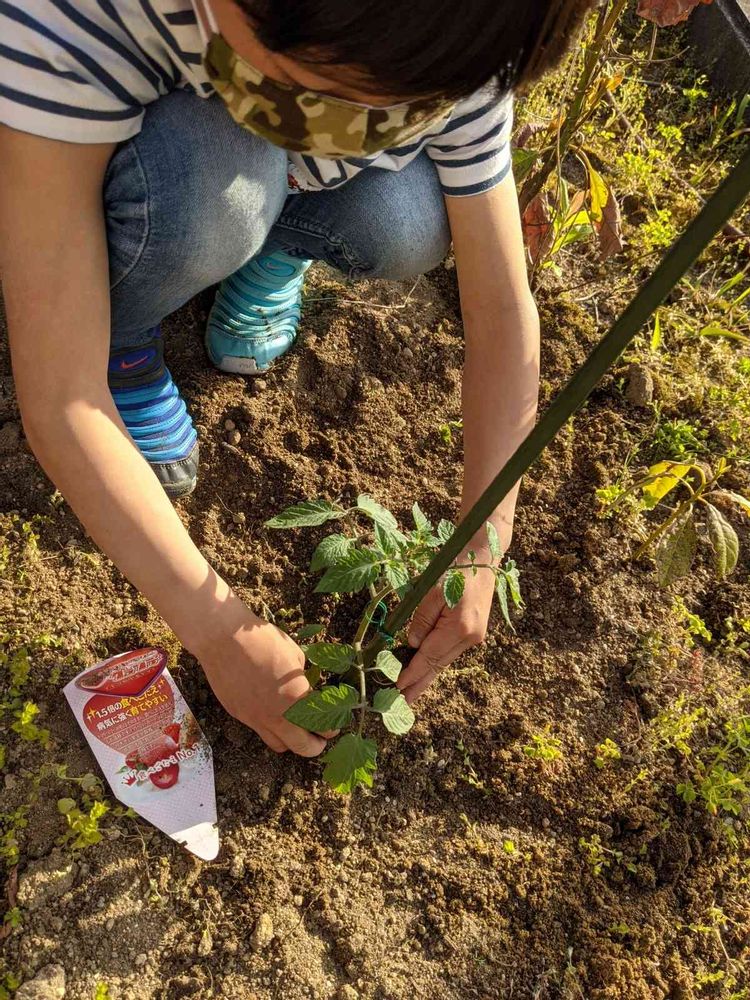 今日は息子と中型トマトの苗(298円)とにんじんの種(貰い物)を植えました🤗🍅🥕