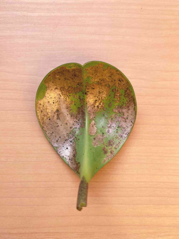 葉っぱの裏にブロンズ色のカサブタみたいな斑点が出来て、それが広がりこんな状況に😰