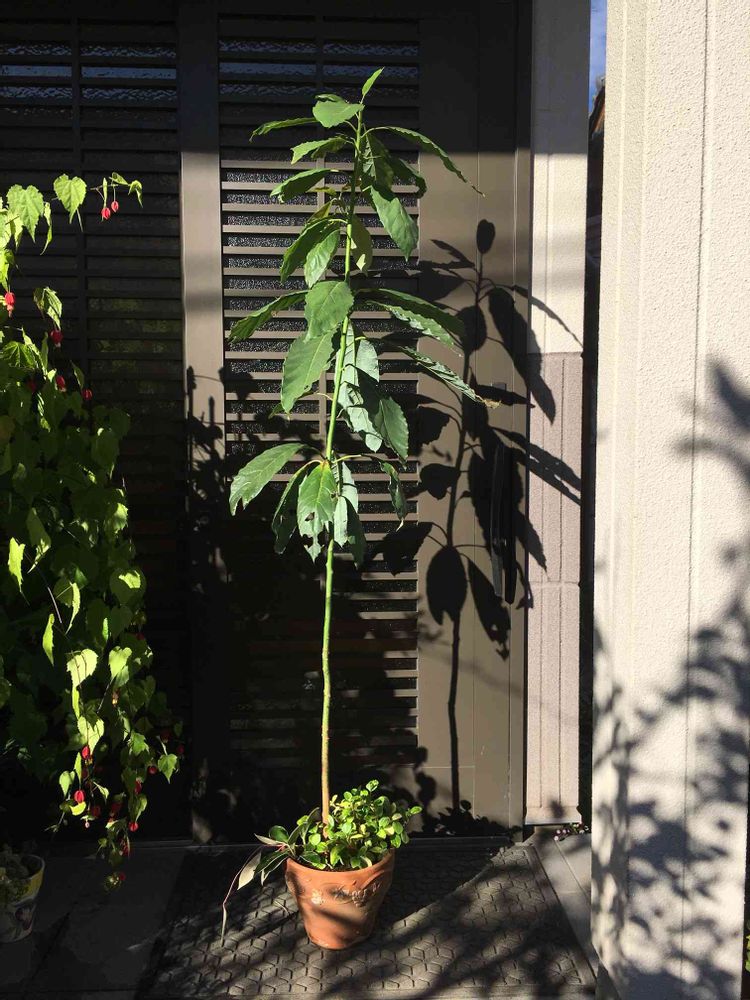 3年前に、アボちゃんとマンゴウさんを沢山 タネ埋めしたんですが、育ってくれたのは、1株のみでした。実家の玄関が冬でも日があたり暖かいので、持って行って育ててもらってます😅