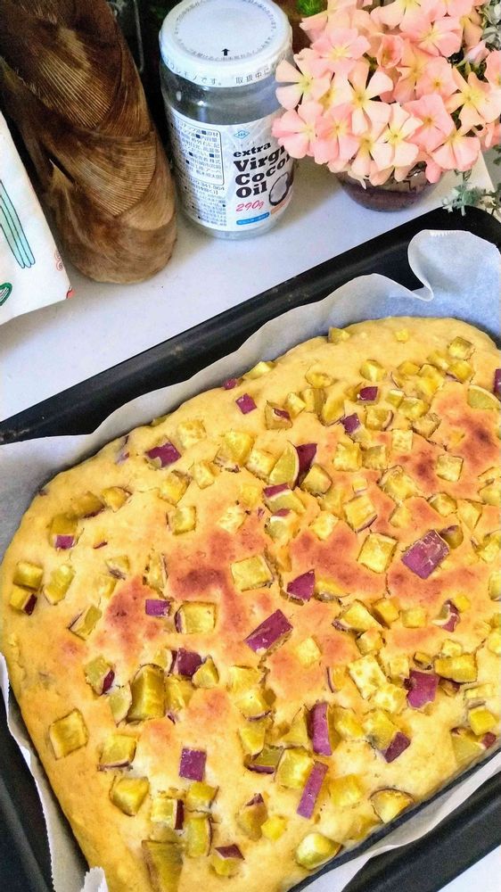 夫が作っているサツマイモが大量に残ってるので、家族のおやつにサツマイモケーキを作ってみました😋