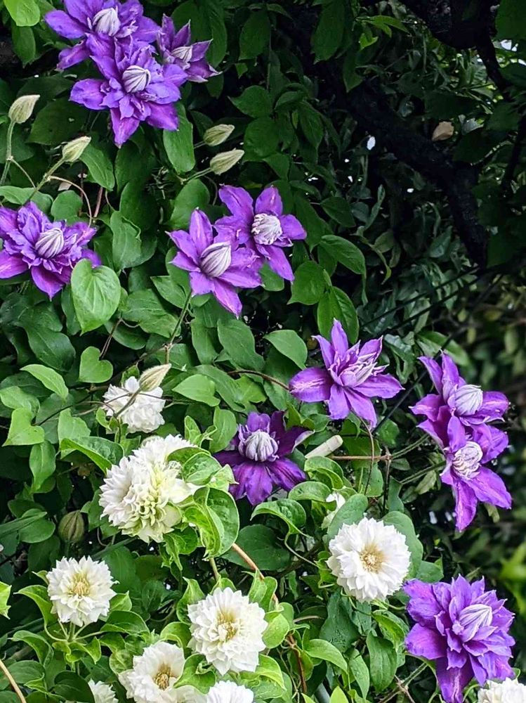 この2種類のクレマチスは、本当に素敵ですよ😃私が羨ましいです💜💟💜💟💜