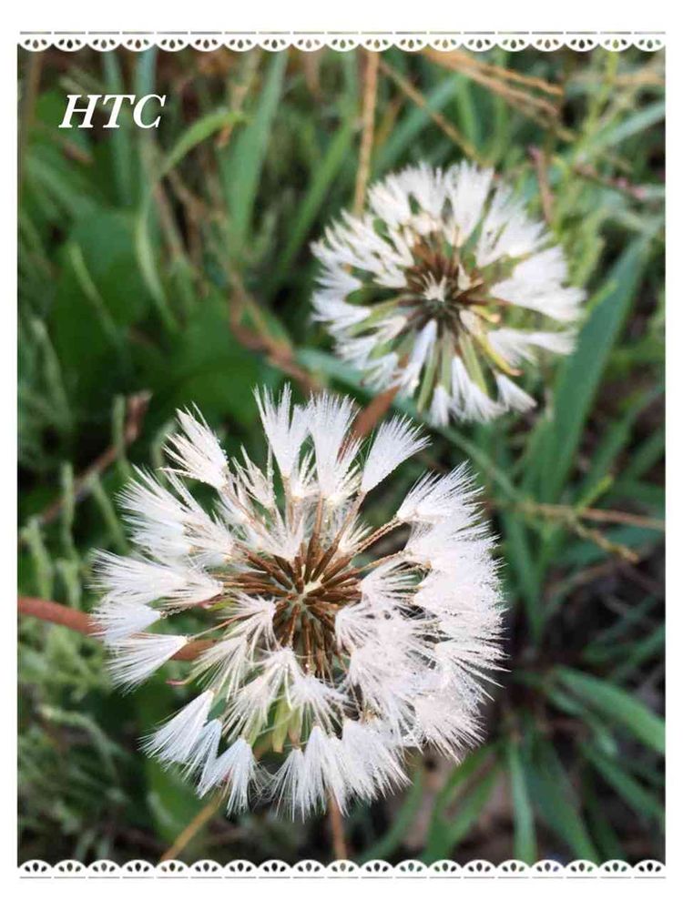 たんぽぽの綿毛 朝露にぬれて