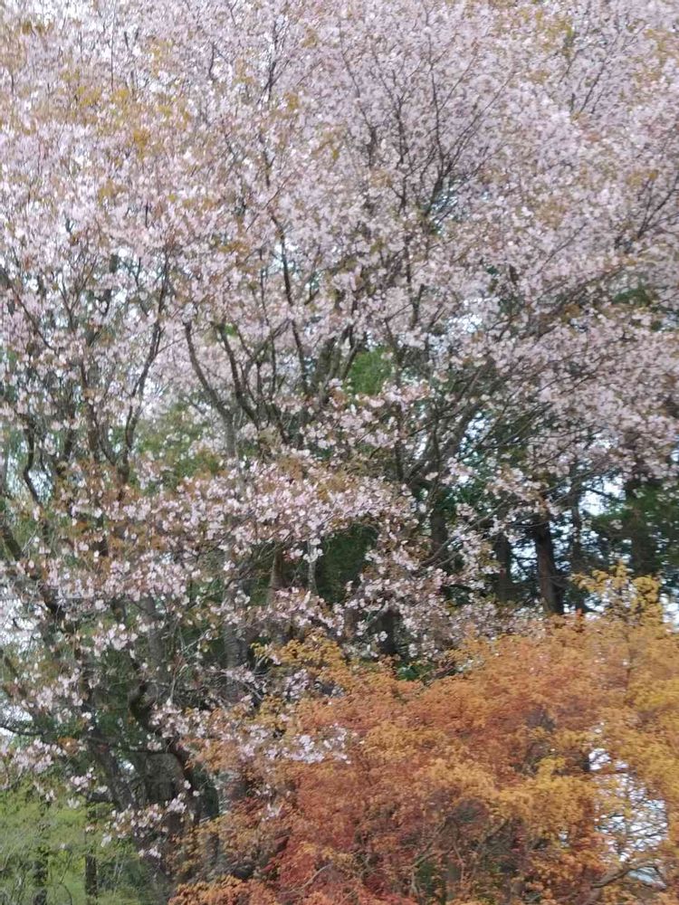 半月前のヤマザクラ、満開。懐かしかったヤマザクラの木、花、葉っぱの色😳しばらくみてません😢