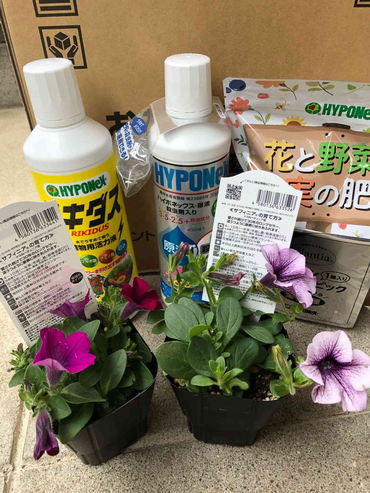 サントリーフラワーズのサフィニアの苗が2種あるので、大切に育てようと思います。