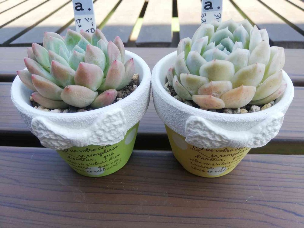 さん、白いリボン🎀かな?素敵ですよ!ゴルなずなさんは、可愛い鉢探し名人だから。多肉さんばかりでなく、鉢も楽しんでいますよ。