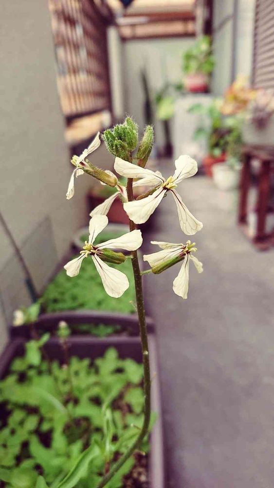 昨年のこぼれ種で冬に芽を出したルッコラには花が咲き、夏に向けて春に芽を出した大葉と、ジャマイカンカラルーの無法地帯🤭