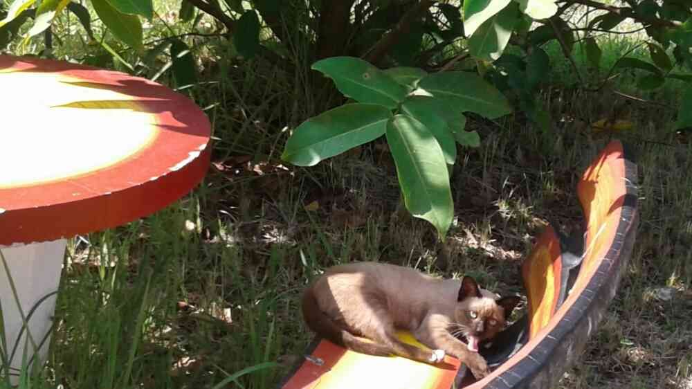 シャムちゃんはレンブの木陰のガーデンベンチでお昼寝するのも好きな様です。