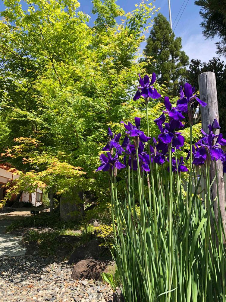 今日のお花のアヤメ。新緑の中に彩り添えるアヤメが初夏を思わせる見事な景色でした♫端午の節句🎏にぴったり(^-^)♡