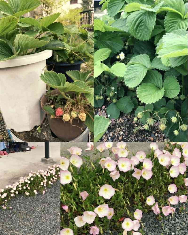 イチゴ,ヒルザキツキミソウ,広島に住む孫の投稿画像