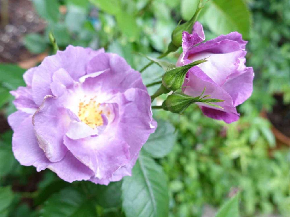 青みがかった紫色が美しい平咲きの薔薇🌹🌿