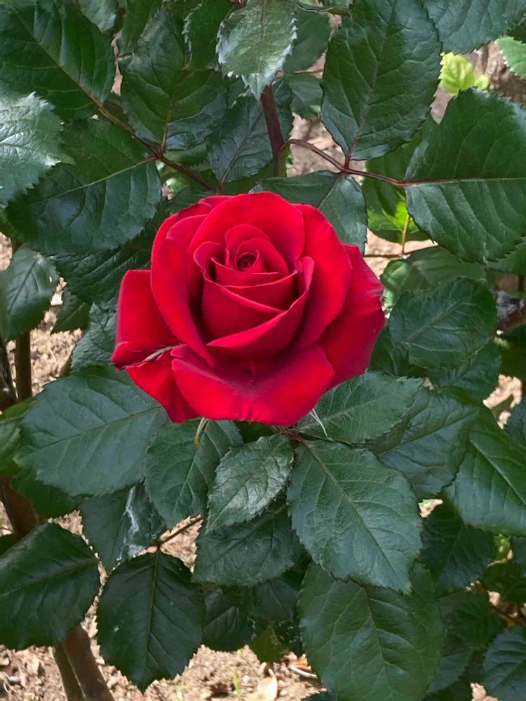 ツヤツヤのグリーンに、真紅のお花、こころ惹かれますね〜。