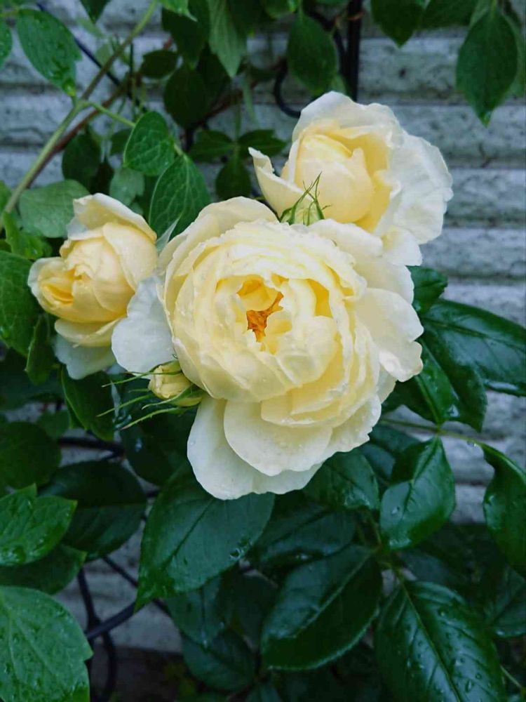 お玄関脇のあまり陽が当たらない所で、両脇のワサワサになって元気なクレマチス キリ・テ・カナワと薔薇 ミルオンザフロスに挟まれて、あまり背丈も伸びてないけど案外元気で綺麗に咲いてくれています。💛