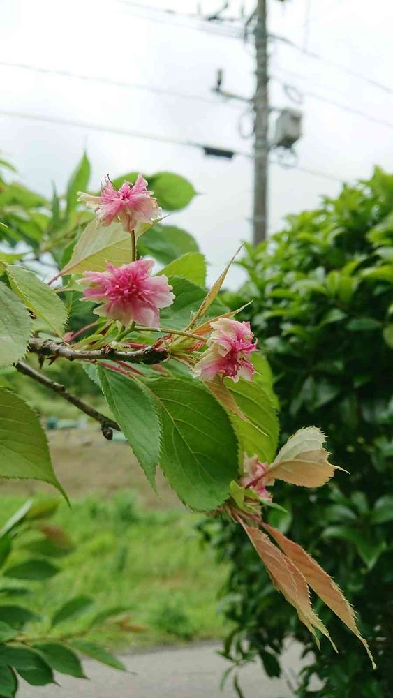 数日前まで緑色の桜だったけど、どんどん赤みが増してきて驚きました😊