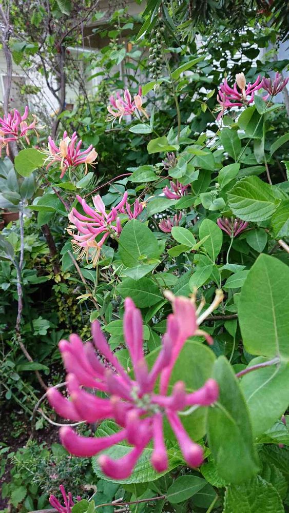 ハニーサックル赤いお花のイメージですがこんな可愛いい色もあるんですね😮