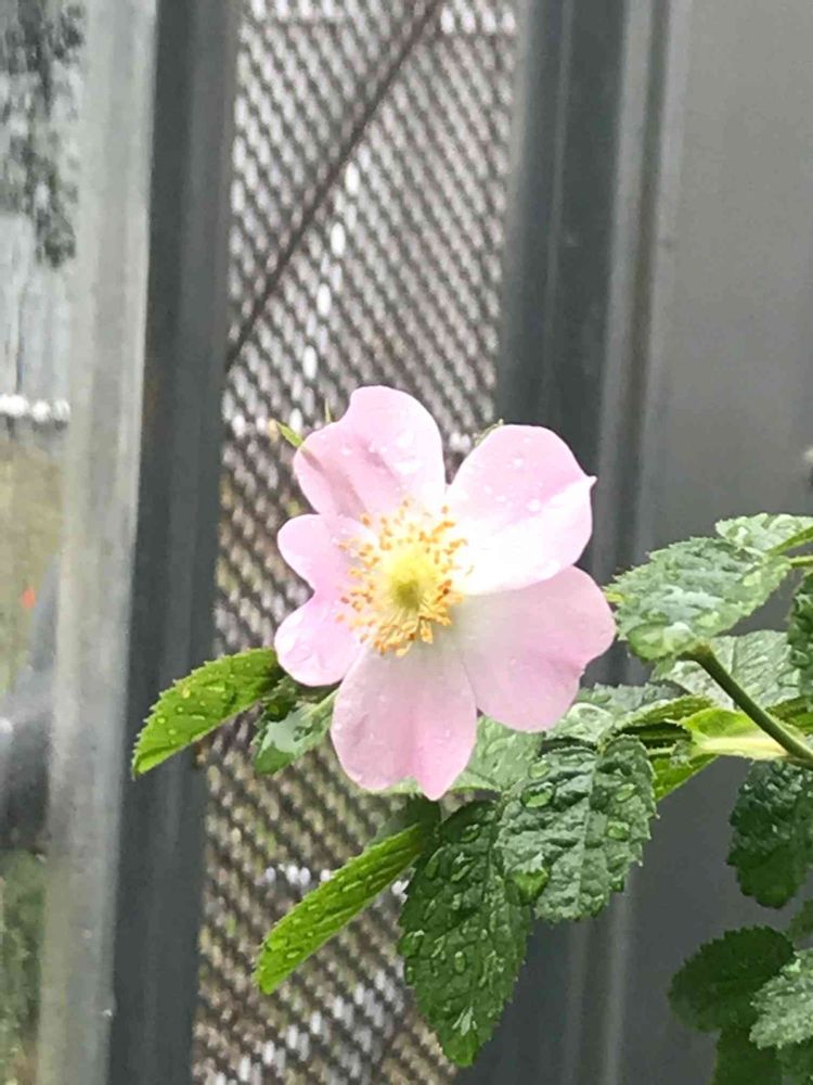 ドッグローズ 今年の一輪め 今日の雨に耐えられるかな?
