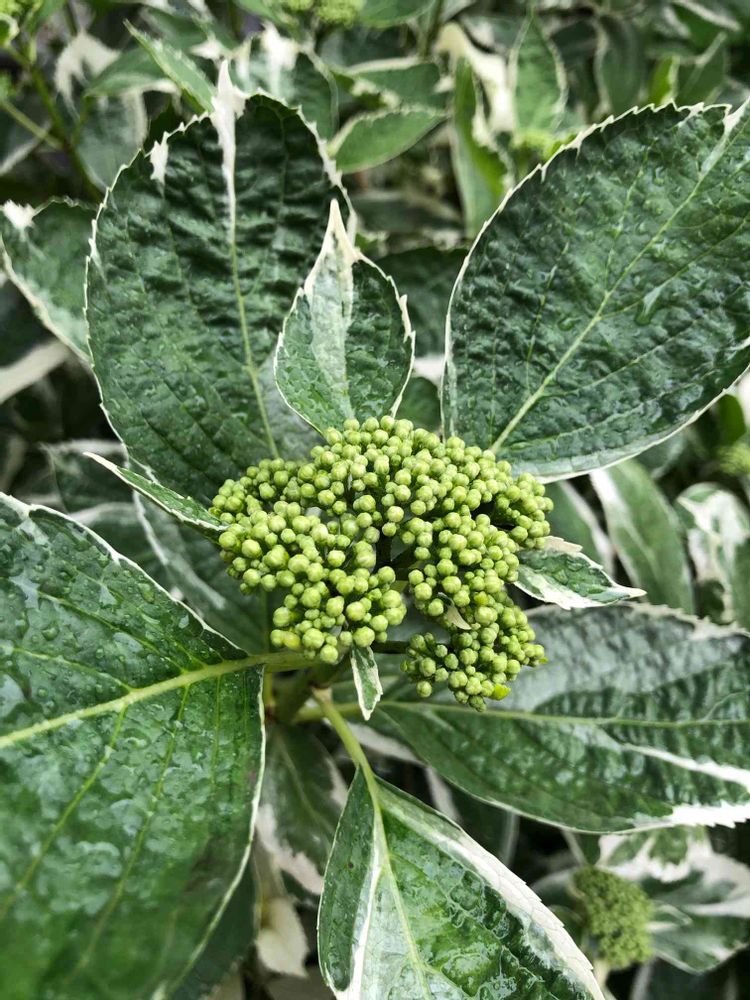 斑入りの葉の紫陽花、珍しいですね😃🌿