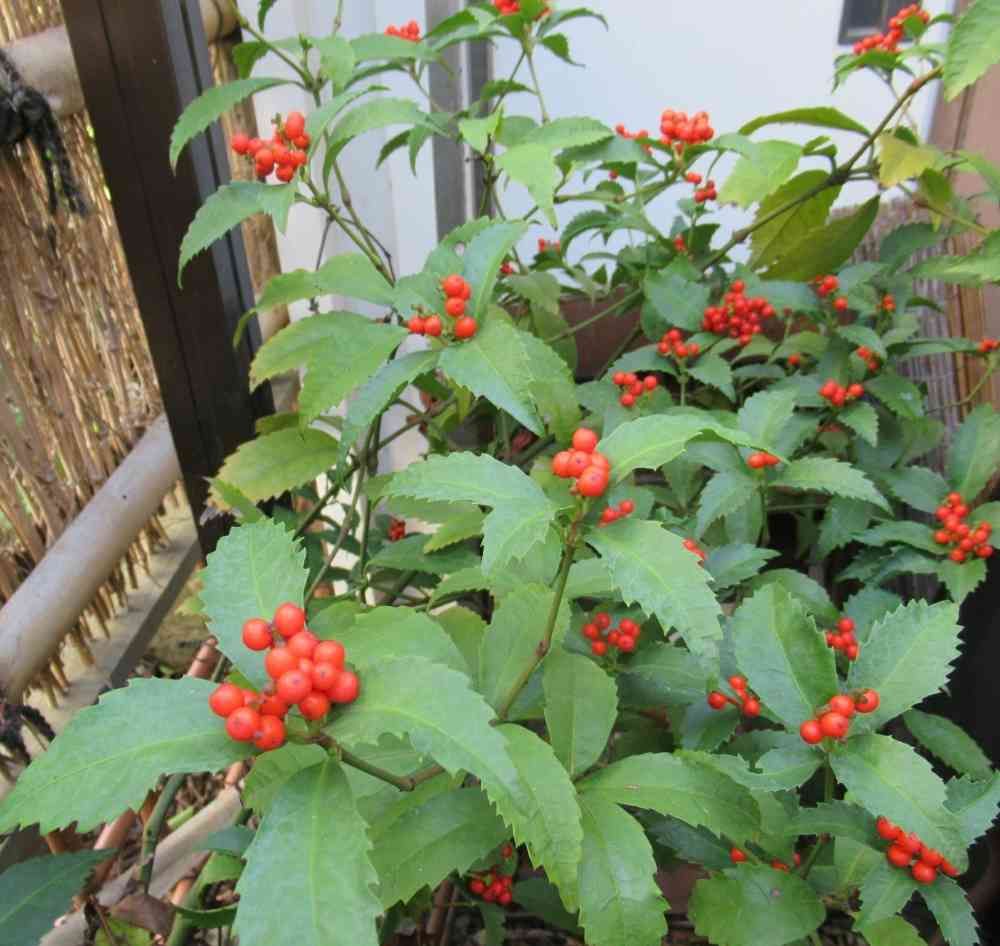 千両の実が色づきました♫