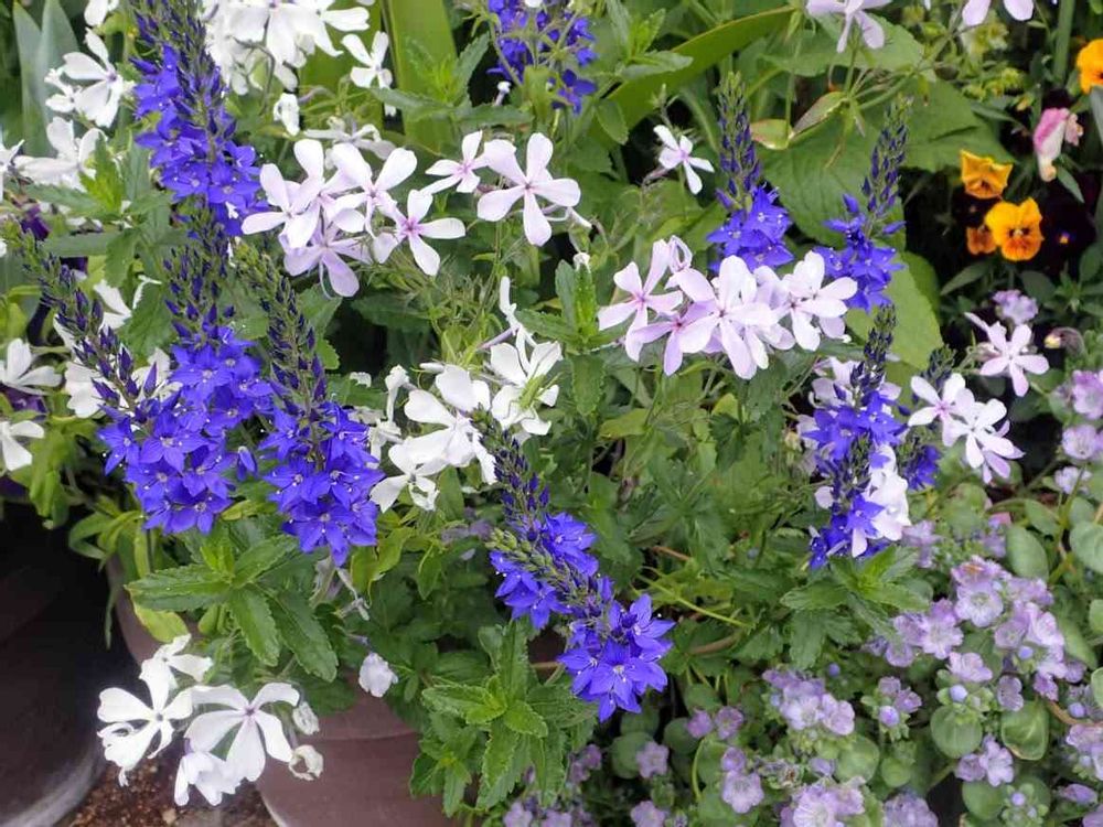 前出の、フロックス・ディバリカータの鉢に植えて置いた、ベロニカ・クレーターブルーのお花が咲きました。