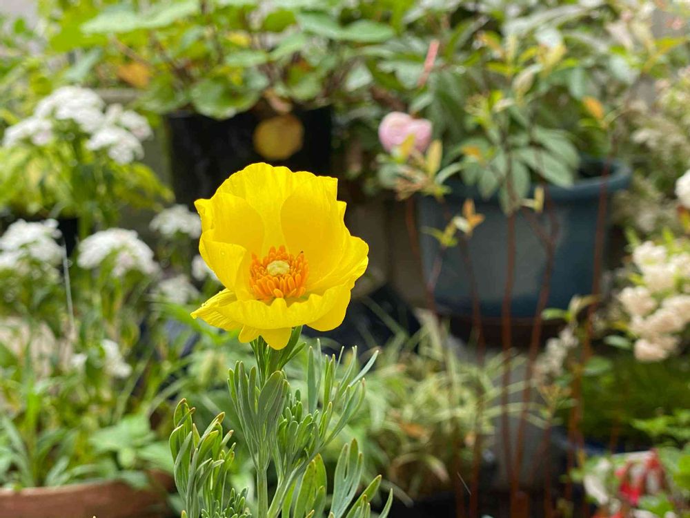 明るい黄色の 花に惹かれて 今年 求めました 花菱草に似た 灰緑色の葉もうつくしいです 初花なのに 雨の日になってしまいました