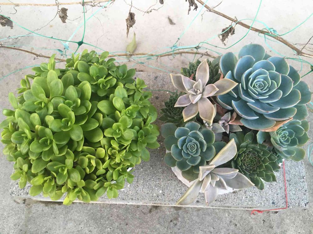 気付いたら七福神の大きいの(七福神リーダーさん、と名付けました😊)の下葉が枯れてきていて💦、アドバイスの元、先週から雨ざらしにしています🎵