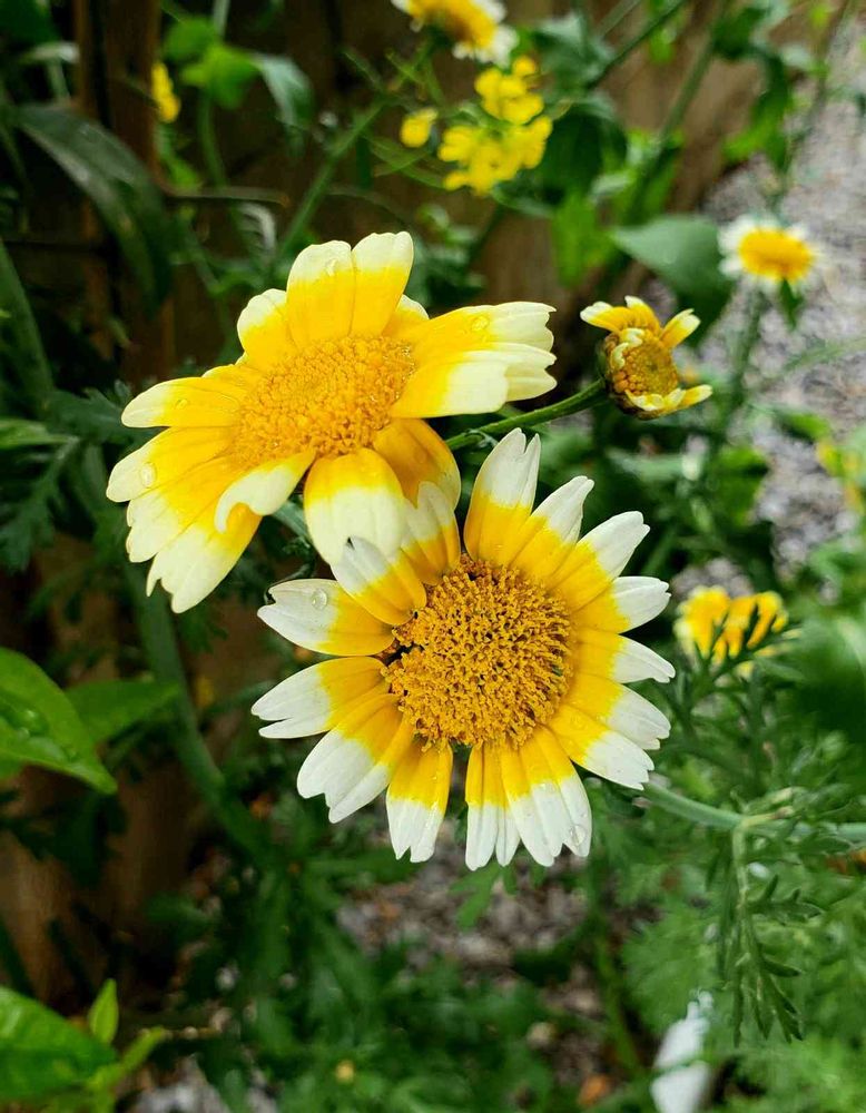 祝日なのにあいにくの雨、、ですが以前にもupした春菊の花、かわいく咲いてます。