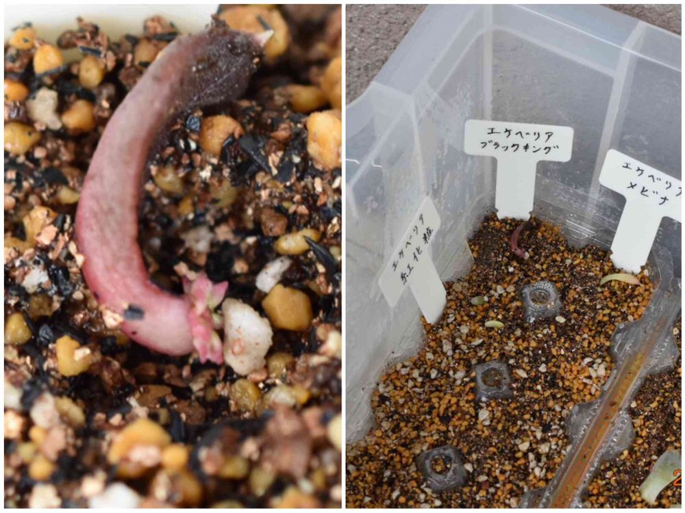 3週間、外で葉挿しして何も変化なかったが、プラケースに入れて1週間で芽が出ていた。