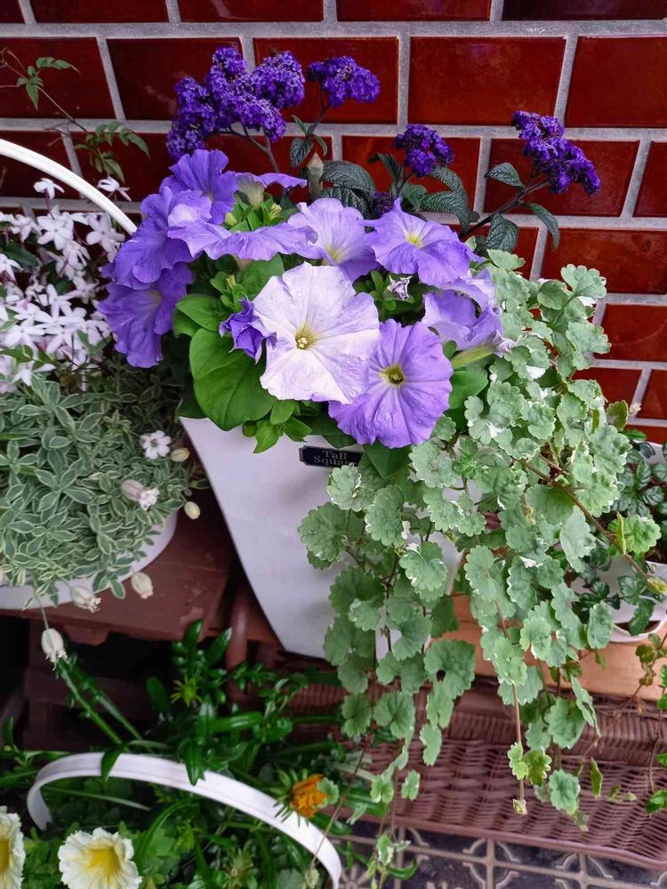 こんにちは。あいにくの雨☔ですね。ヘリオトロープ、ペチュニア、夏に向かって涼し気な色あいですね。とても素敵です。😍