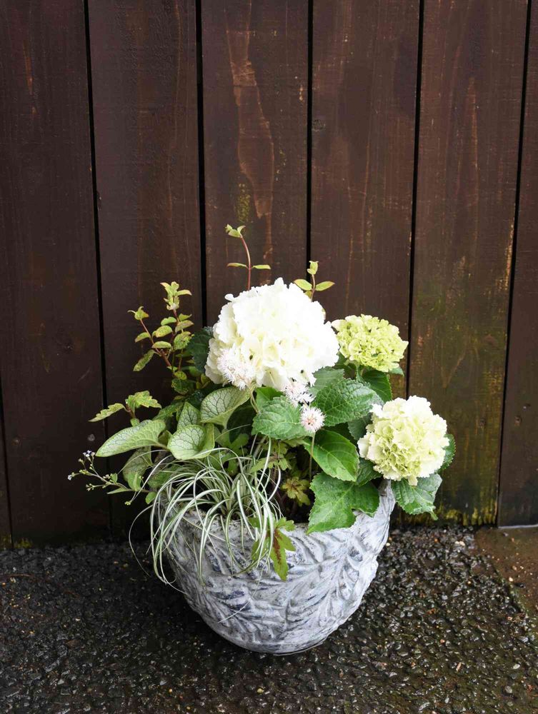 アジサイ、ティアレラ、ハニーサックル ミントクリスプ、ブルンネラ、カレックス