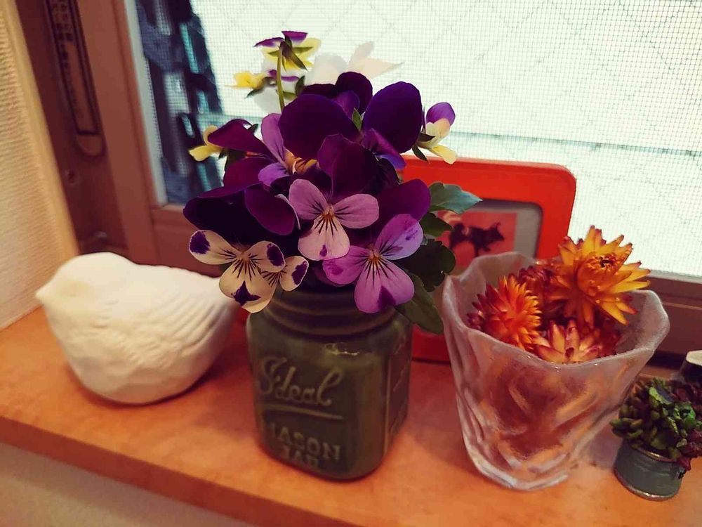 今年はビオラが終わるのが早くて、最後プチ切り花にして種をちょこっととりながら片付けてます。今年もビオラちゃんありがとね😊
