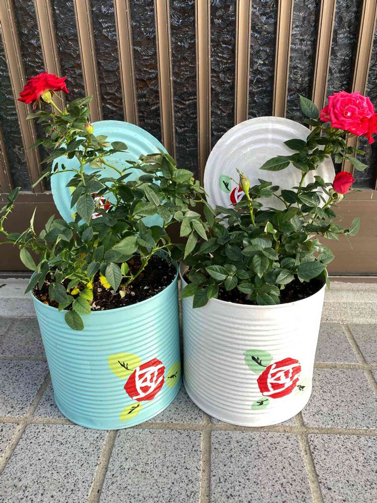 知り合いから大きな空き缶をもらえるので、多肉植物ではなく寄せ植え用の鉢としてリメイクしています。