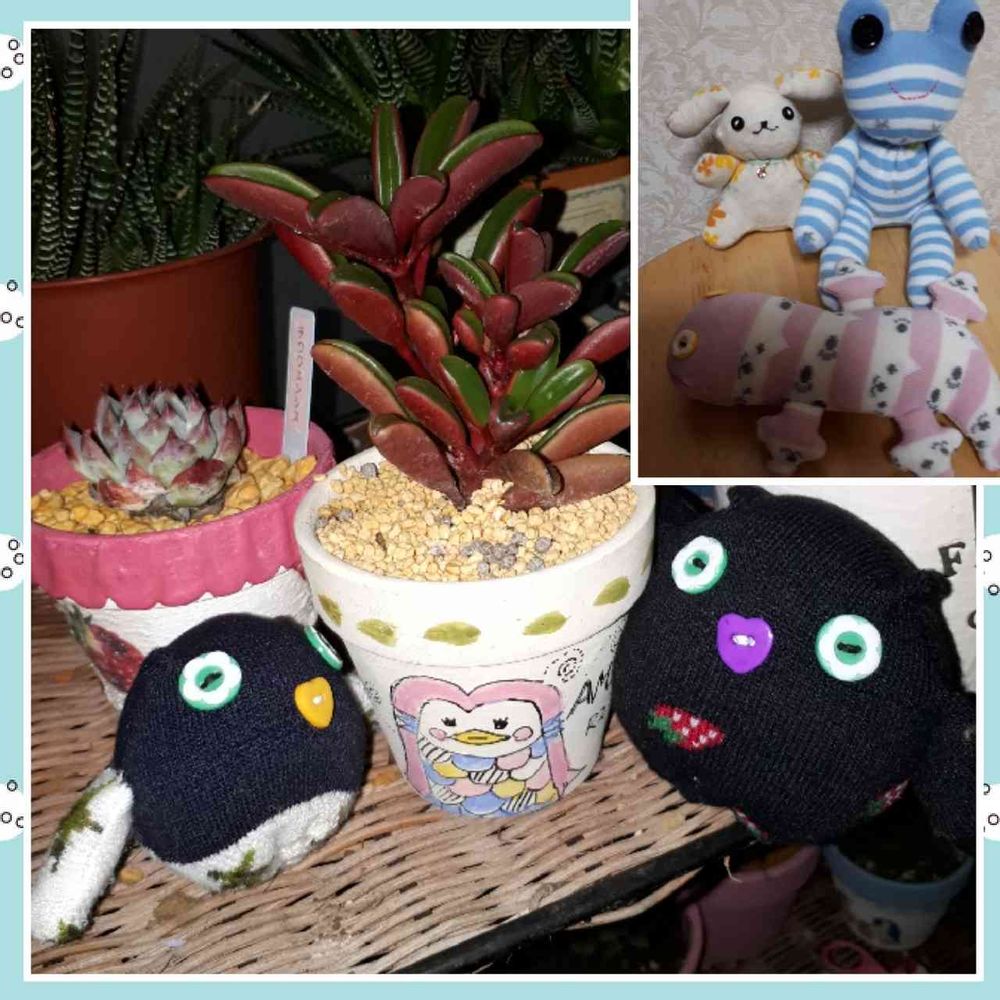 ↗️前に実家のお母さんにまつぴよさんのソクラビちゃんを見せたら気に入っていたので母の日の🎁としてお願いして作って頂きました🐸🐰🦎