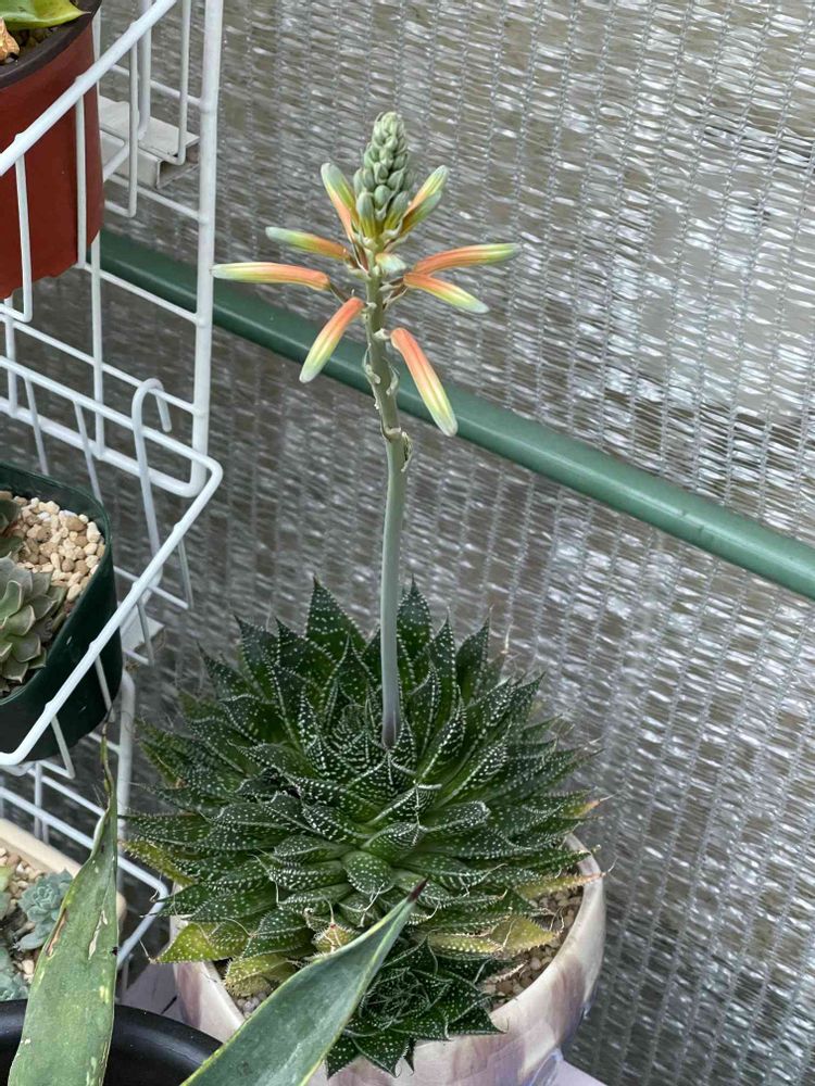 ビニールハウス内でこっそり花を咲かしていたアロエアリスタータ綾錦✨