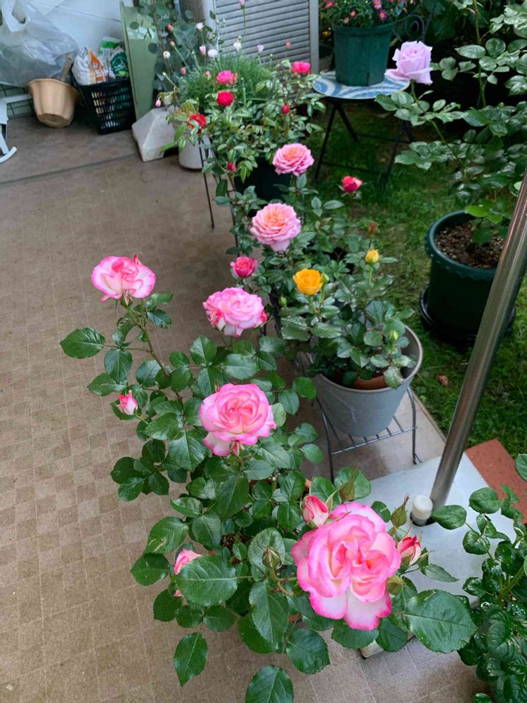 今朝の庭、今日は気温高くなるので、バラだち一気に開花する様になる♪
