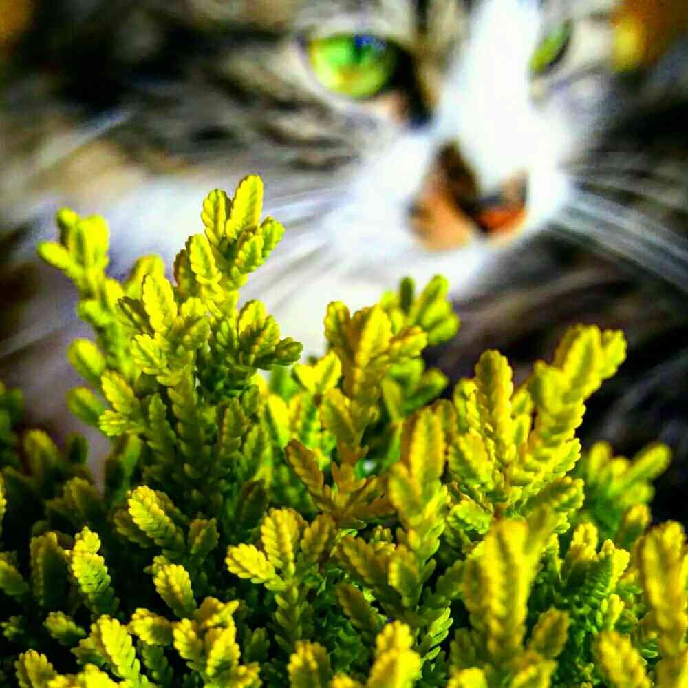 モモの眼の色とヒースの色が同じ💚