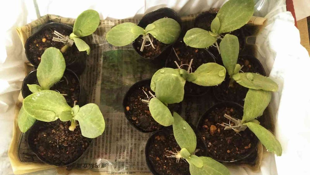 日曜日に素人の手作業で何とかカボチャの台木に接いで見たメロンの接ぎ苗です。