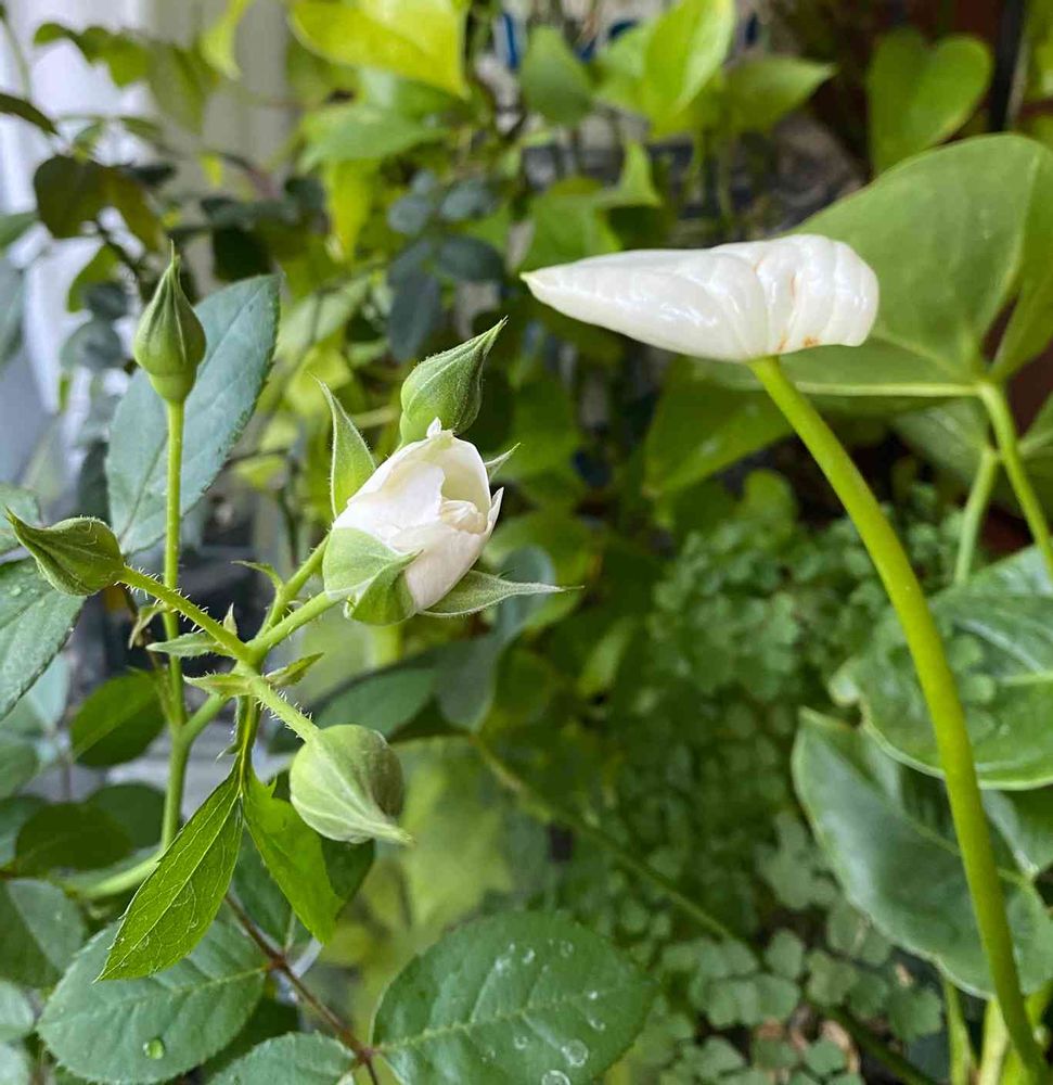 和ばらの凛とアンセリュームの蕾達。