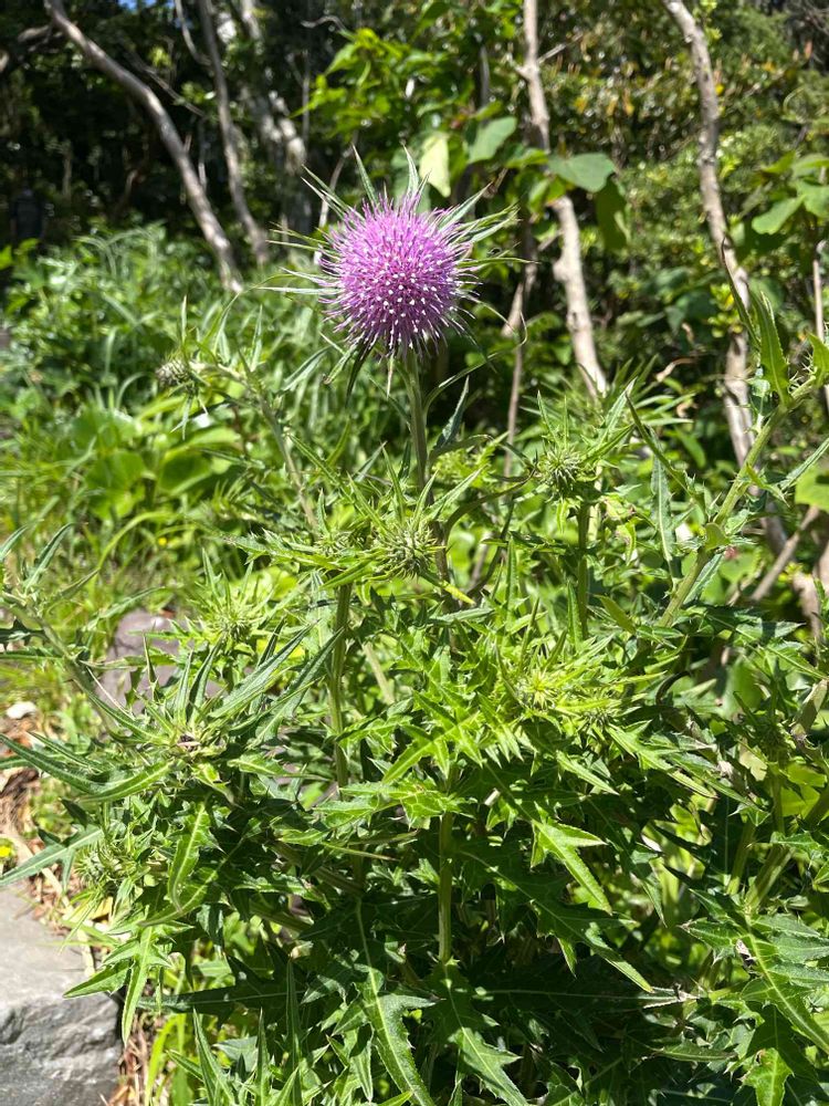 トゲトゲしい葉っぱにこんな綺麗な花をつけるマリアアザミ。