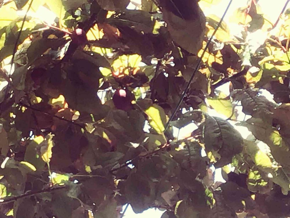 実生のスモモ大石早生、写り悪いですが実がわかりますか?こちらは10個程確認しました。コンポートにすると最高です。