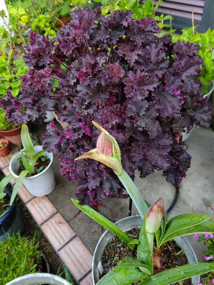 ヒューケラ,八重咲きアマリリス,鉢植えの投稿画像