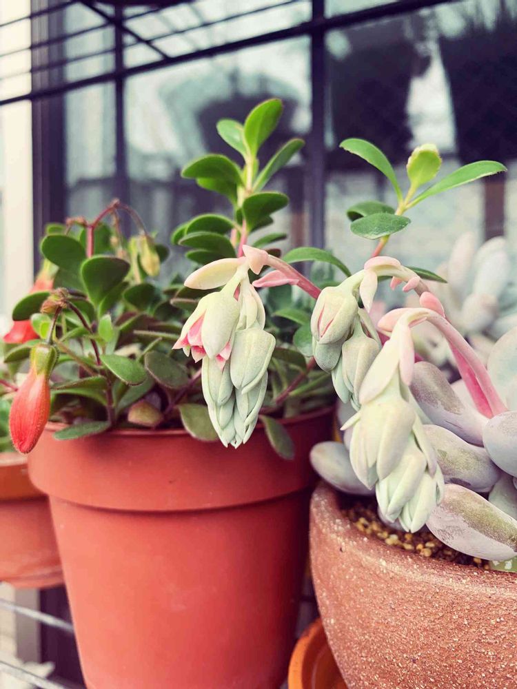 お外組の多肉たちが、花を付けてくれました。冬越しは一か八かだけど、越えられるとこんなご褒美がある🎁✨