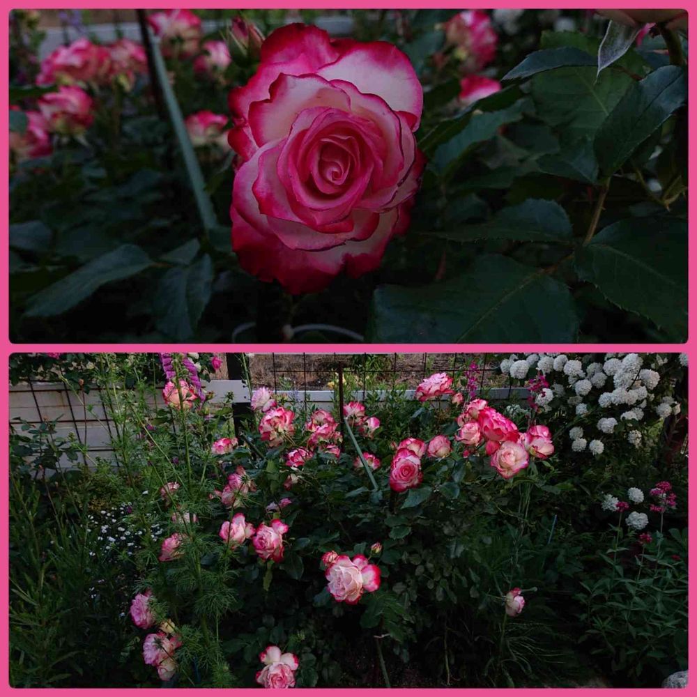 のんちゃん今年の王子は、咲き始めは赤の輪郭で始まりピンクで終わった見たいだよ。昨日の強風と今日の強雨で多分終わったと思うよ。だけど今までのパターンと逆バージョンは初めてだったよ。昨日の朝外に出たら鉢バラ皆オネンネしてた、新枝付け根から折れてるの結構あったよ、😂