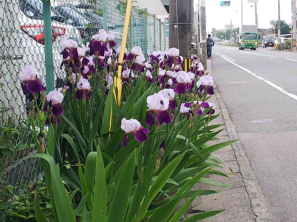 ジャーマンアイリスが道の脇にたくさん咲いていました