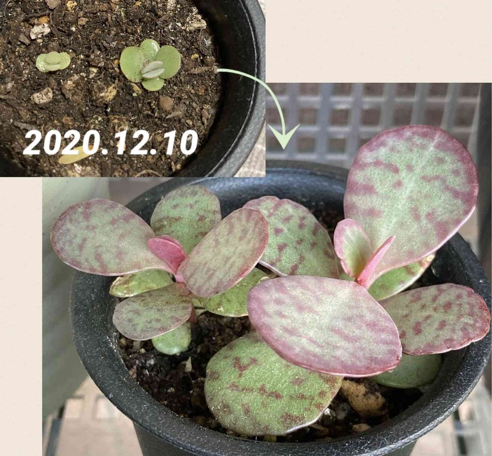 小さくてまん丸な葉っぱだった子が、葉の形も少し変わって模様が出てきました😳