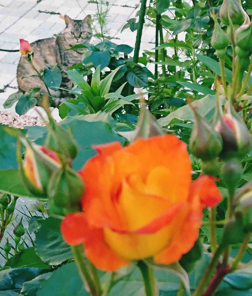 薔薇のお花が綺麗って?ちょっと"ピンぼけ"になっちゃって😆💦何々そうですよね😊うしろの🐈さくらちゃんが主役ですものね😊❣️同じお名前で嬉しかったです😌💕